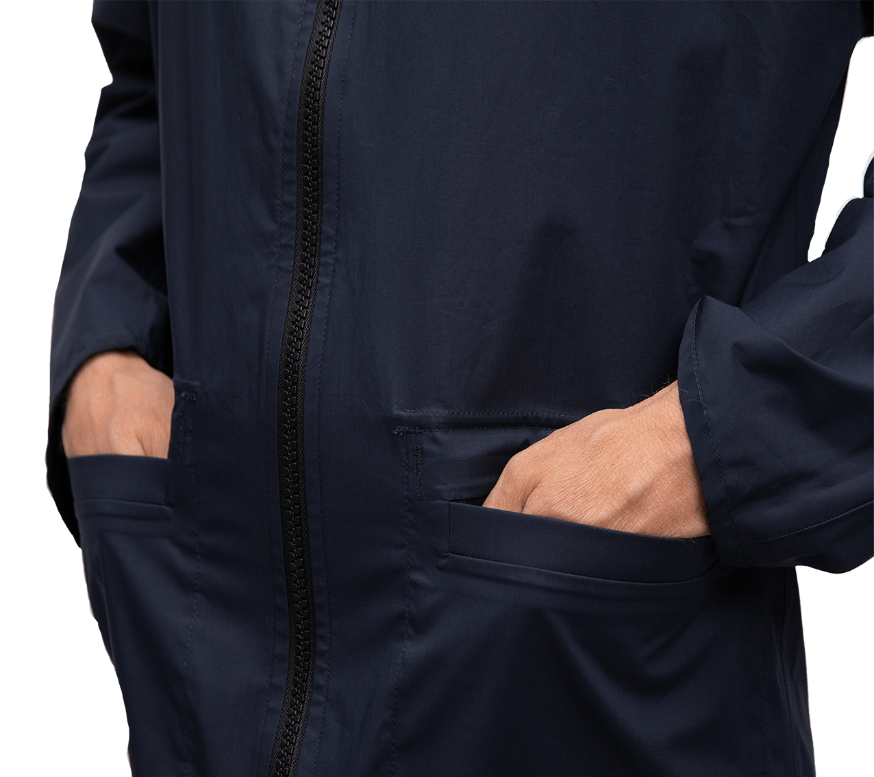 Versatile and reversible kimono raincoat. Crafted from a breathable fine cotton fabric with a waterproof PU coating. The custom-made wind and rainproof YKK zip ensures comfort in any weather. Taped seams and reversible design mean you can seamlessly switch from technical outerwear to smart-casual elegance. Lightweight and easy to wear, it’s your ideal travel companion.